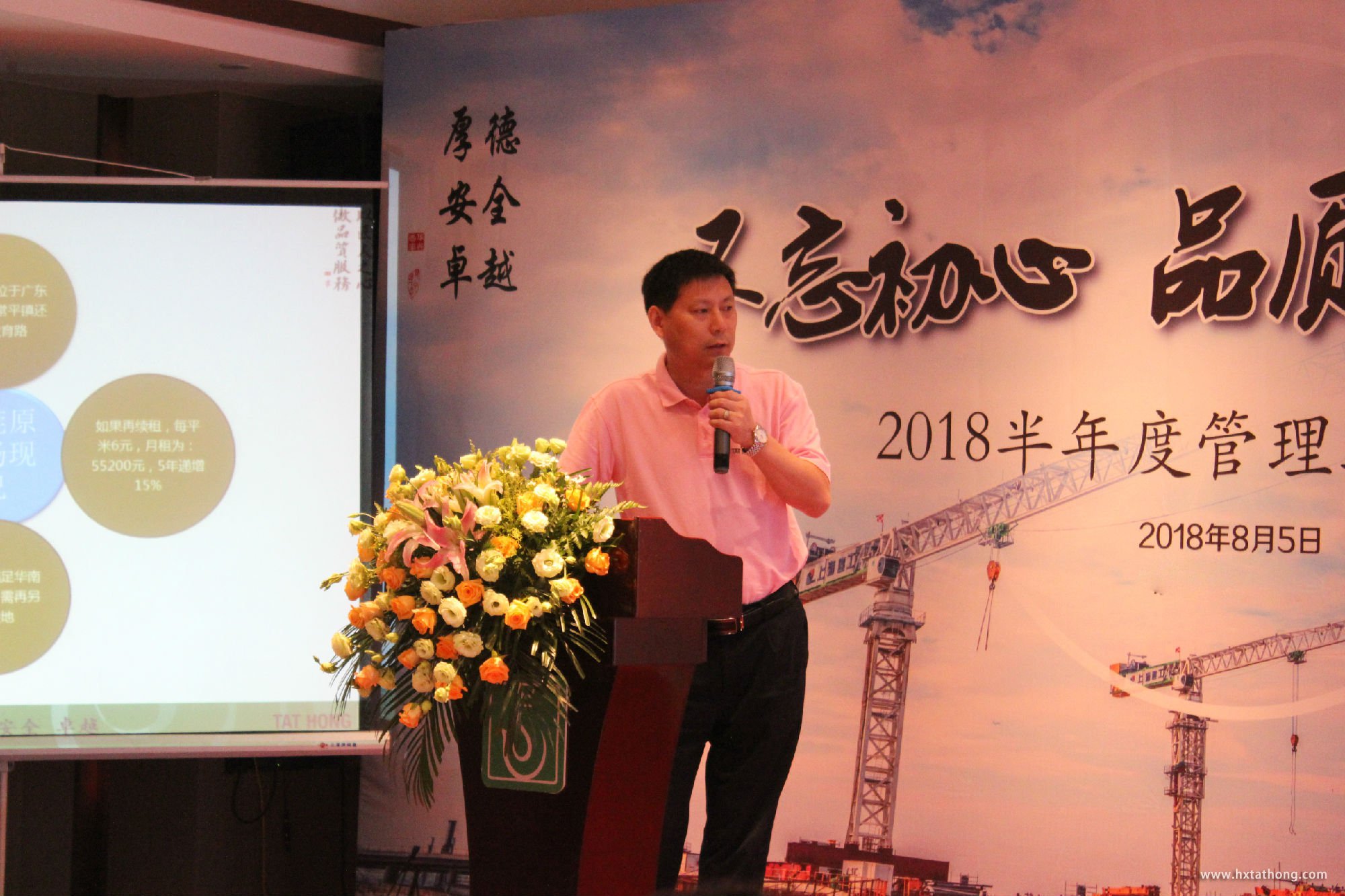 總經(jīng)理朱輝以公司的發(fā)展戰(zhàn)略為目標(biāo),回顧戰(zhàn)略執(zhí)行,強化數(shù)據(jù)分析。多維度的回顧了2018年初內(nèi)部及外部的SWOT分析,分析了2016-2018上半年的利潤及設(shè)備出租率,提出采用品牌影響力拓展海外市場的構(gòu)想,并就年度預(yù)算受控管理提出幾點要求:1、加強四標(biāo)一體的精細化管理;2、加強預(yù)算管理、毛利率預(yù)算管理思路及管控策略;3、深耕細化加強區(qū)域化施工服務(wù);4、建立收支曲線分析圖及生產(chǎn)管控相結(jié)合的管理模型;5、跟進市場的不斷變化,依托“一帶一路”加強海外市場開發(fā);6、完善供應(yīng)鏈管理,降低成本,不斷優(yōu)化庫存管理思路。
