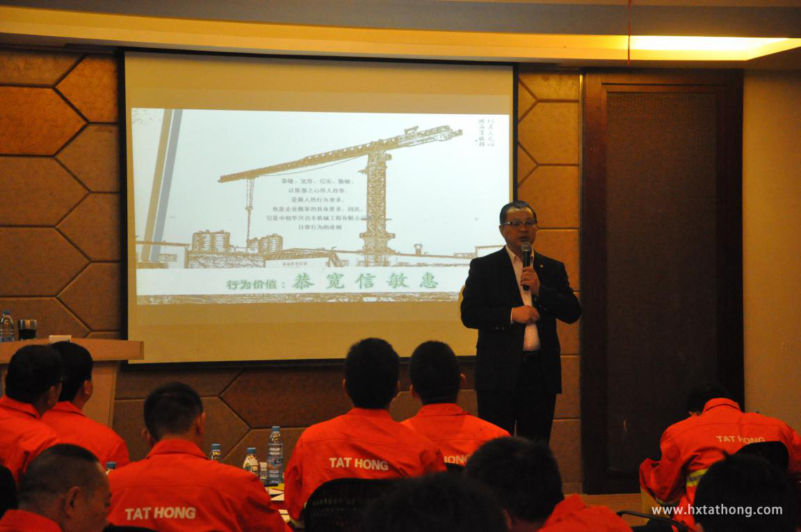 本年度培訓(xùn)課程:從企業(yè)文化、責(zé)任、設(shè)備、安全、權(quán)益、服務(wù)、團(tuán)隊貫穿三天三夜的培訓(xùn)。由總經(jīng)理朱輝主講《企業(yè)文化》、《塔機(jī)現(xiàn)場安全及施工現(xiàn)場的客戶服務(wù)技能》;常務(wù)副總經(jīng)理仕軍主講《塔機(jī)專業(yè)技術(shù)解析》、人事行政總監(jiān)尹訓(xùn)英主講《百分百責(zé)任》、《如何提高溝通力》、《優(yōu)秀的機(jī)長成長之路》,以及為期半天的實操課程《塔機(jī)電氣、機(jī)構(gòu)總維修技能培訓(xùn)》主講老師:鄒桂平、袁成龍、劉彬。