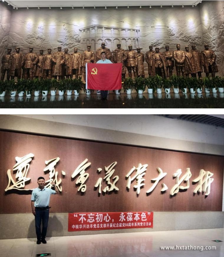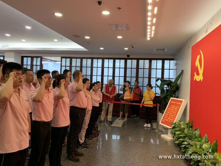 在紀念館一層序廳,由中核華興達豐黨支部書記朱輝領誓,全體黨員面對鮮紅的黨旗進行了莊嚴宣誓,錚錚誓言召喚著初心,提醒著我們要始終堅守“堅守初心、永葆本色”的信念。