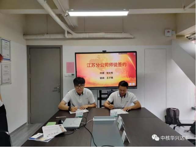 2023年7月24日上午,中核華興達(dá)豐華東區(qū)域在上??偛拷M織2023年應(yīng)屆大學(xué)生“師徒協(xié)議”簽訂儀式。共有4對師徒現(xiàn)場簽約,中核華興達(dá)豐華東區(qū)域總監(jiān)、重慶大峰副總經(jīng)理鄭興瑞,中核華興達(dá)豐人事行政總監(jiān)蔡寅受邀參加。