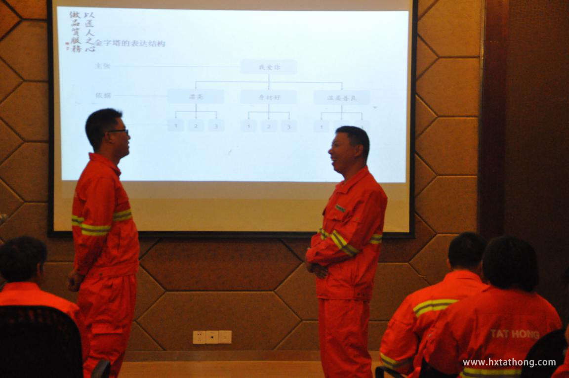 本年度培訓(xùn)課程:從企業(yè)文化、責(zé)任、設(shè)備、安全、權(quán)益、服務(wù)、團(tuán)隊貫穿三天三夜的培訓(xùn)。由總經(jīng)理朱輝主講《企業(yè)文化》、《塔機(jī)現(xiàn)場安全及施工現(xiàn)場的客戶服務(wù)技能》;常務(wù)副總經(jīng)理仕軍主講《塔機(jī)專業(yè)技術(shù)解析》、人事行政總監(jiān)尹訓(xùn)英主講《百分百責(zé)任》、《如何提高溝通力》、《優(yōu)秀的機(jī)長成長之路》,以及為期半天的實操課程《塔機(jī)電氣、機(jī)構(gòu)總維修技能培訓(xùn)》主講老師:鄒桂平、袁成龍、劉彬。