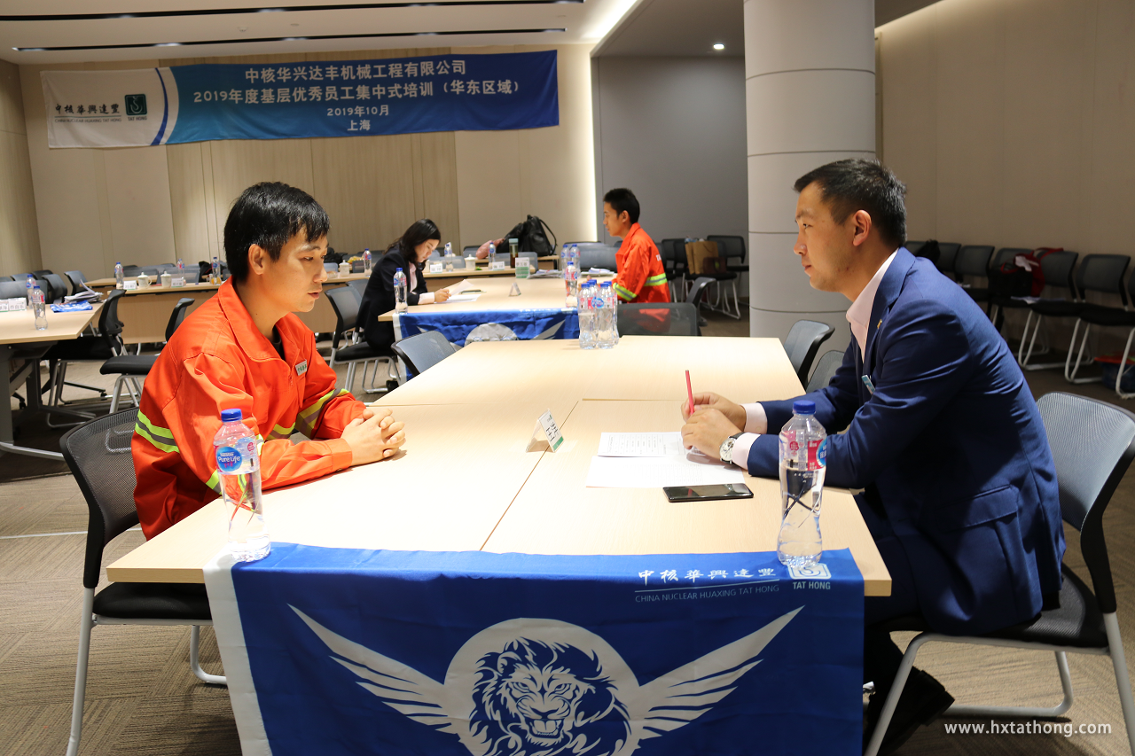 2019年10月11-14日,中核華興達(dá)豐機(jī)械工程有限公司—華東區(qū)域2019年度基層優(yōu)秀員工集中式培訓(xùn)在上海舉辦,公司總經(jīng)理朱輝、副總經(jīng)理王洋、人事行政總監(jiān)尹訓(xùn)英出席培訓(xùn)活動并作為講師為學(xué)員授課。共有來自上海分公司、江蘇分公司、浙江分公司、華東維修分公司24名優(yōu)秀的機(jī)長、塔司、指揮、安拆、維修參加本次培訓(xùn)。