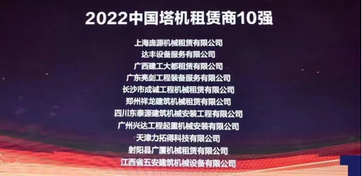 恭喜達(dá)豐設(shè)備服務(wù)有限公司榮獲“中國塔機(jī)租賃商10強(qiáng)”