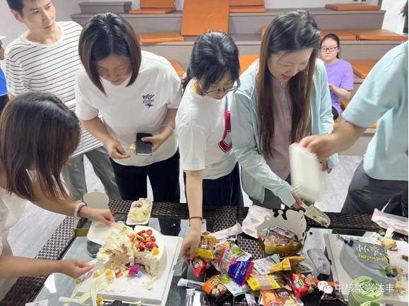 本次生日會由人事行政管理中心經理郝楠負責主持,一場簡單溫馨的生日會在熱情洋溢的開場白和眾人熱情真摯的祝福聲中即將拉開了帷幕。生日會開始,達豐員工們集體為壽星們送上了真摯的生日祝福。歡聲笑語不止,溫情暖意不斷,在這個特別的日子里,一張張燦爛的笑臉,將生日會完美定格。
