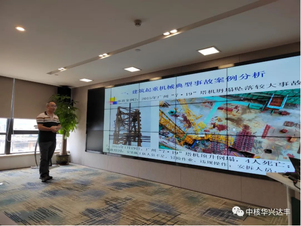為進一步提升中核華興達豐華南區(qū)域各分公司塔機安拆質量、提高工作效率、提高全體員工的安全意識。2023年6月20日上午,中核華興達豐在廣州分公司啟盛會展產業(yè)園5樓大會議室展開安全月專項培訓,本次培訓由安全質量部和華南區(qū)域辦公室組織,我司有幸邀請了廣東省建筑科學研究院集團股份有限公司、廣東省建筑工程質量安全監(jiān)督檢測總站的肖鳴老師為全體員工舉行建筑起重機械知識安全培訓講座。