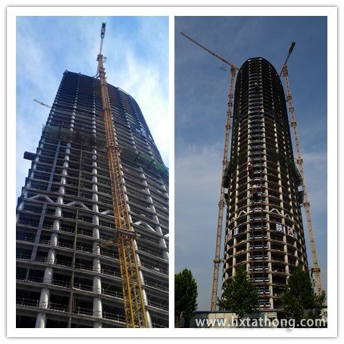 陜西延長石油科研中心項目位于西安高新區(qū),由地上46層和裙房5層組成的大型建筑,我司主要負責塔樓兩臺STT553-24t塔機的施工服務,兩臺塔機安裝高度達到了240多米。