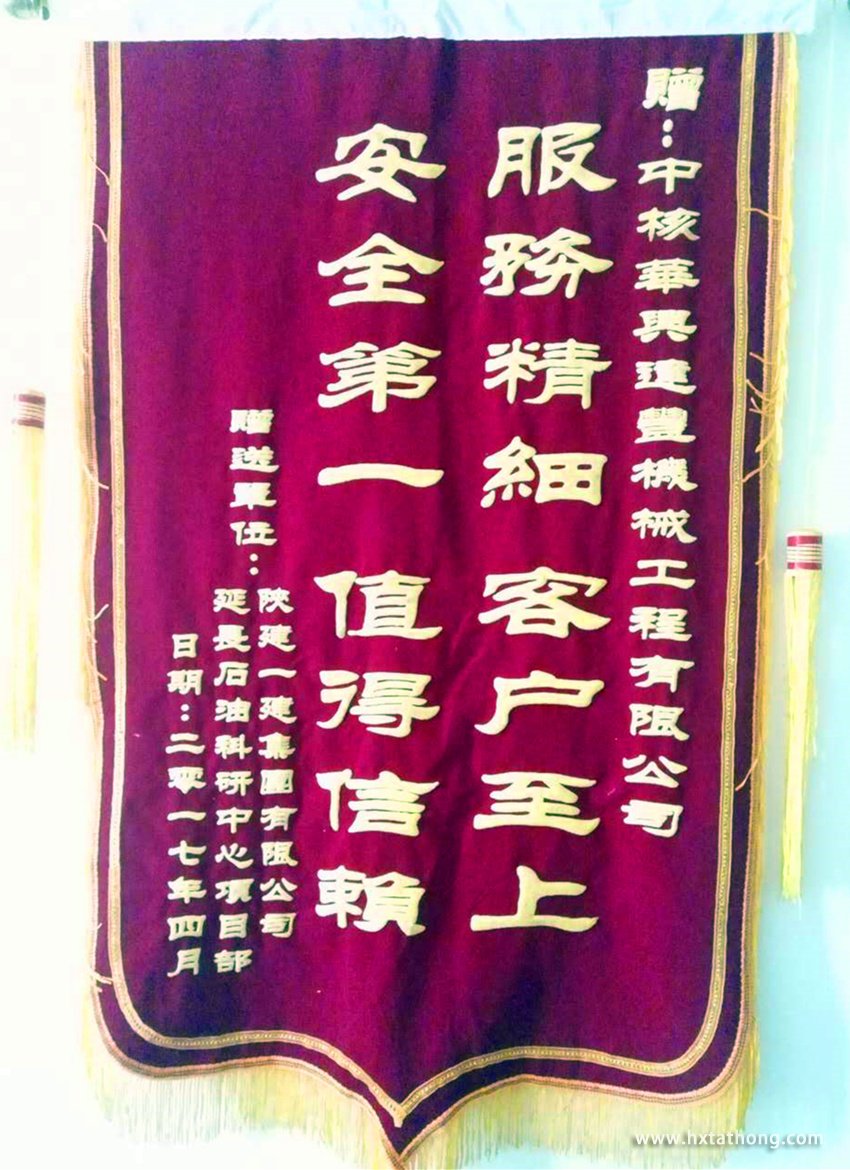 4月30日,在陜西延長石油科研中心項目部召開的總結(jié)會議上,項目部行宏經(jīng)理將印有“服務精細、客戶至上,安全第一、值得信賴” 16個字的錦旗以及“安全業(yè)績證明”頒發(fā)給了中核華興達豐陜西分公司安拆人員。這是陜西一建集團公司對我司陜西延長石油科研中心項目服務的最高評價。