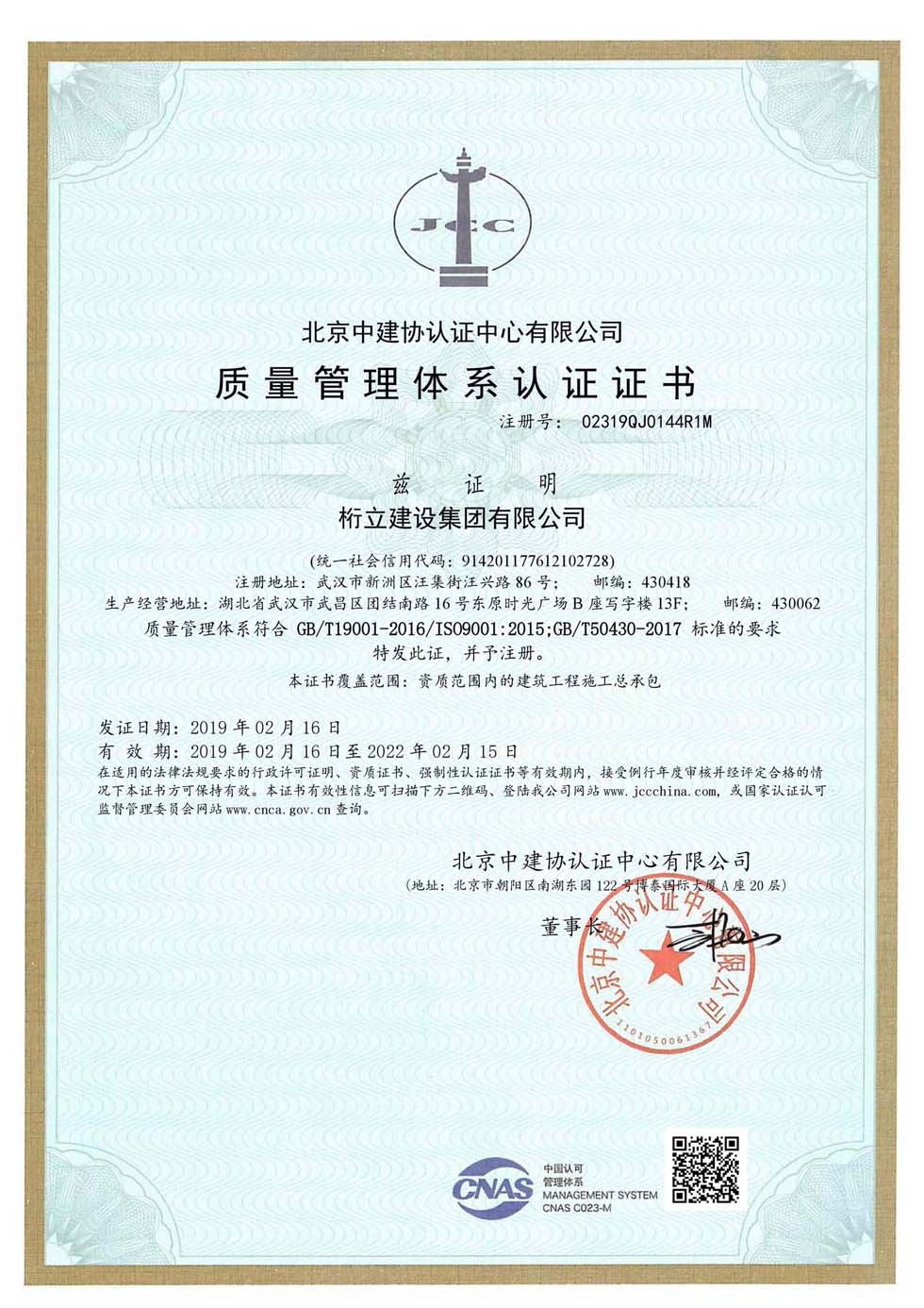 質(zhì)量管理體系證書
