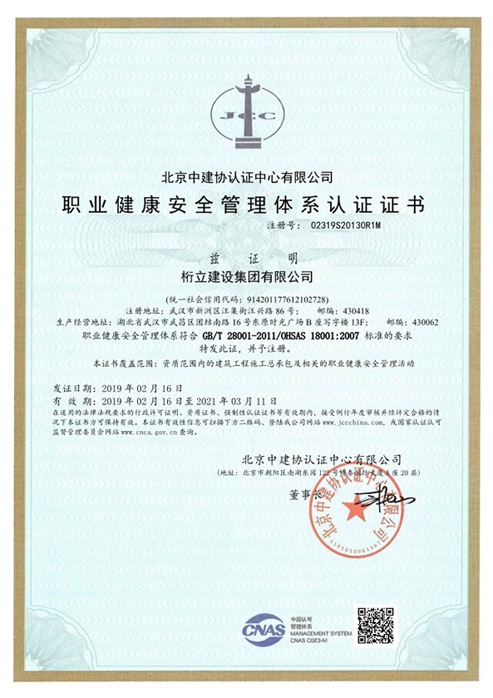 職業(yè)健康安全管理體系證書
